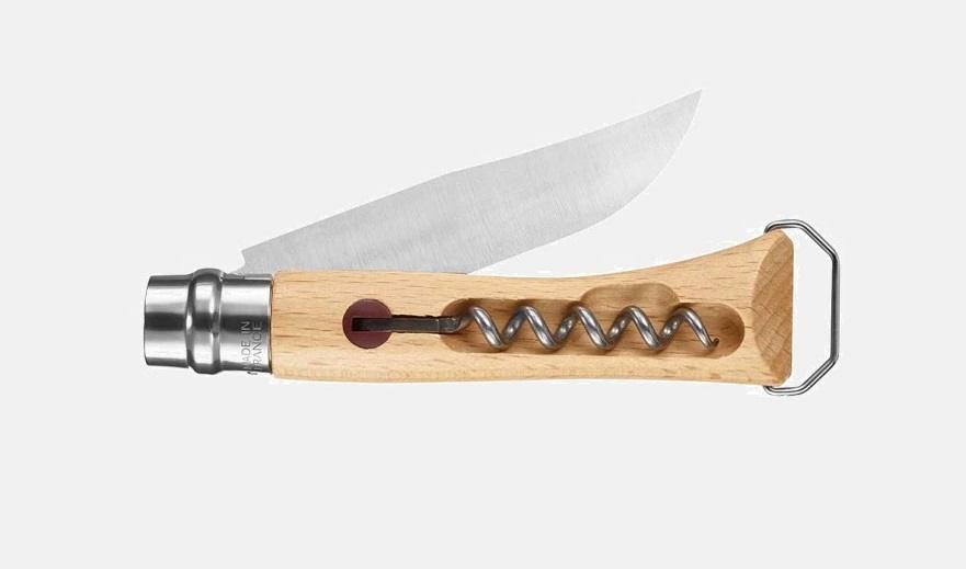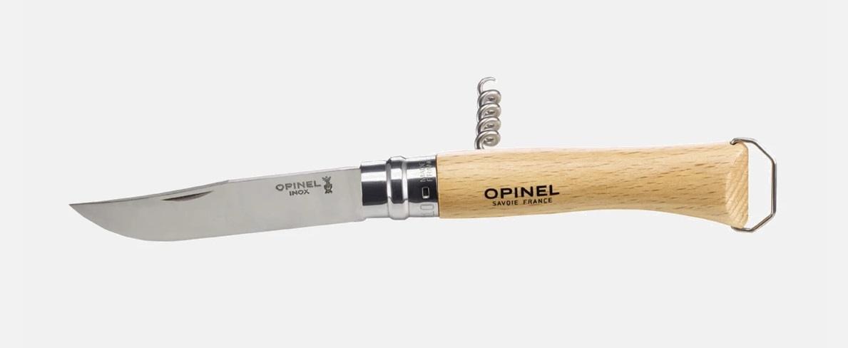 L’apribottiglie cavatappi N°10 di Opinel è un coltello versatile, sempre utile durante i picnic o altri pasti all’aperto. È dotato di una lama in acciaio inossidabile di 10 cm che consente di tagliare salumi, formaggi e molti altri alimenti, oltre a un robusto manico in legno di faggio. Sul manico si trovano un verme professionale a 5 spire in acciaio inoxe anche un tondino d’acciaio che consentono di stappare le bottiglie e di appendere il coltello. Il coltello ha anche un anello di sicurezza Virobloc ed è realizzato in Francia.